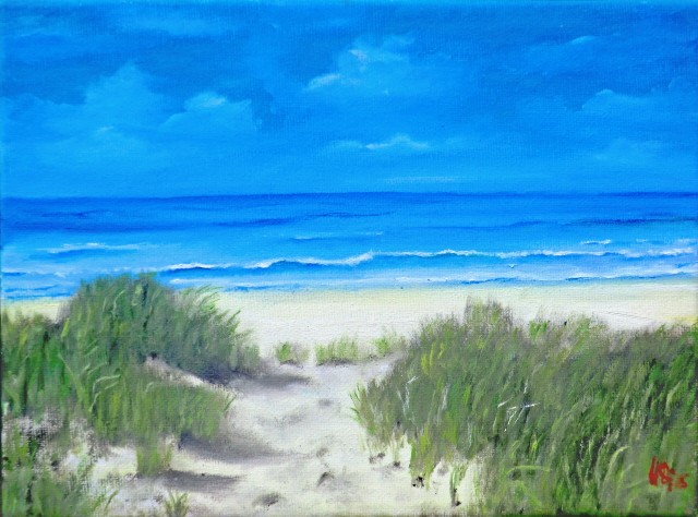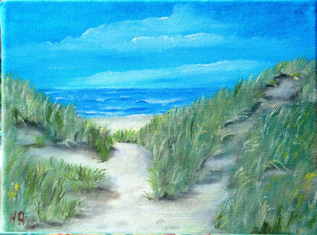 Weg zum Strand, Bild 24x18 cm, Öl auf Leinwand