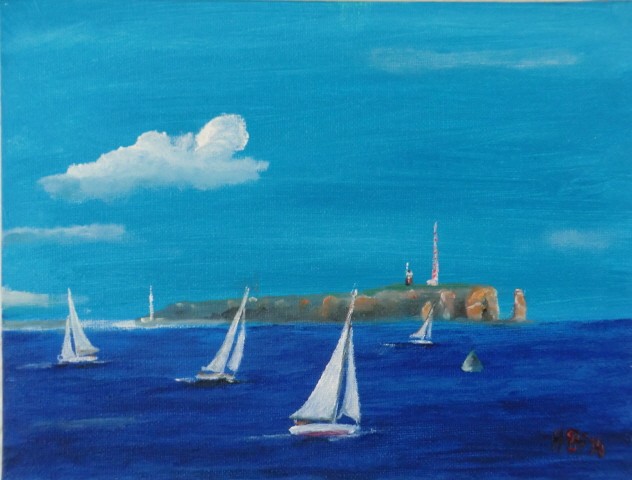 Regatta vor Helgoland, Bild 24x18 cm, Öl auf Leinwand